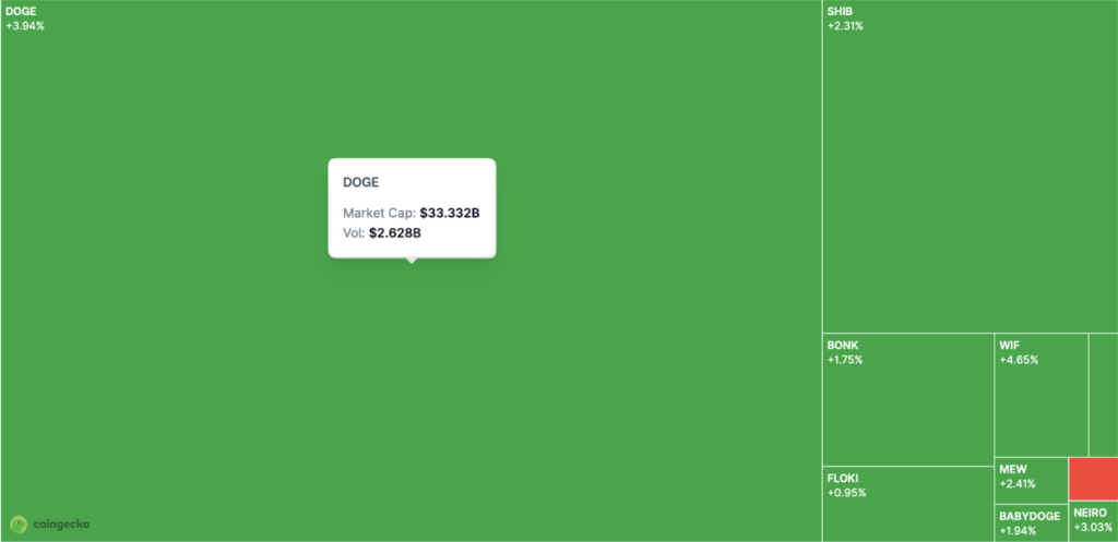 이후 봉크(BONK), 플로키(FLOKI) 등 수십개, 혹은 수백 개의 강아지 테마 밈코인이 이 성공 공식을 모방하려고 시도했다. 강아지 테마 밈코인은 전체 밈코인 시장의 절반 이상을 차지한다.