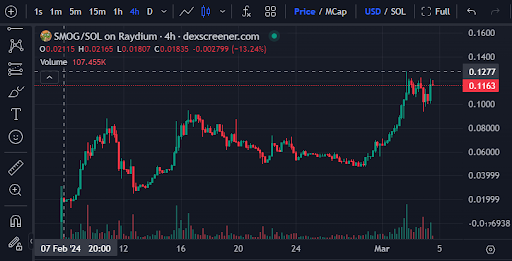 이번 상승으로 인해 SMOG 토큰의 시가총액은 1억 달러에 근접했다. 솔라나의 젊고 배고픈 용에게는 기념비적인 순간이었다.