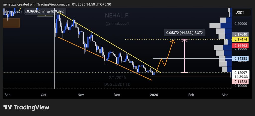 As long as Dogecoin stays below this zone, any upside move is likely corrective rather than a full trend reversal. A more meaningful bullish signal would only appear if price reclaims and holds above the broader $0.16 resistance band.
