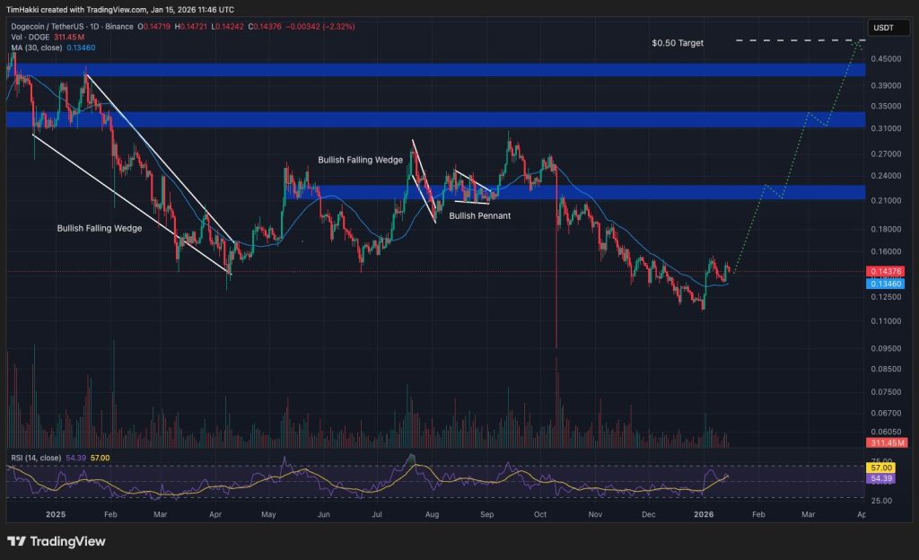 The long-standing slogan “Dogecoin to $1” continues to rally the Doge Army. Reaching that level in 2026 may be difficult without meaningful regulatory progress in the U.S.