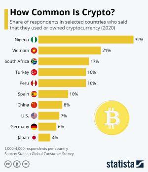 Nigerians, Vietnamese, and South Africans are the most active crypto users/owners, according to the latest Statista Global Consumer Survey. 32% of the respondents in Nigeria said they used or owned cryptocurrency, while in Vietnam and South Africa these numbers were 21% and 17% respectively.
