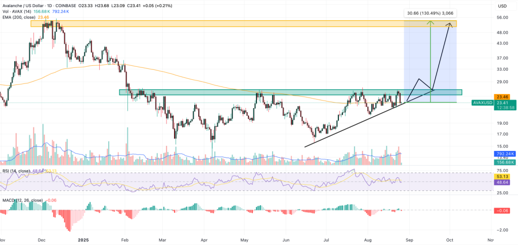 Since late July, AVAX has been forming higher lows, showing that buyers are stepping in at stronger levels each time the price dips.