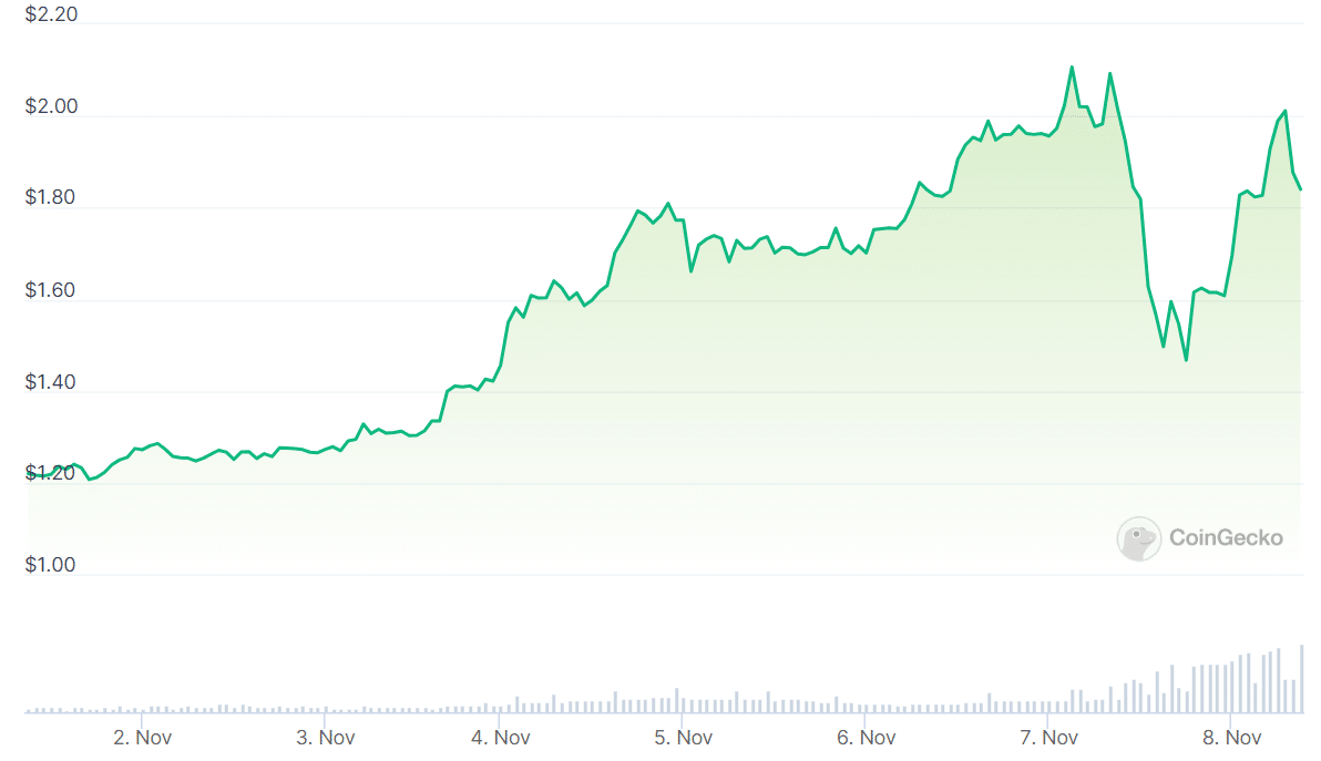 Meanwhile, WEMIX saw more modest climbs, returning briefly to the $2 mark.