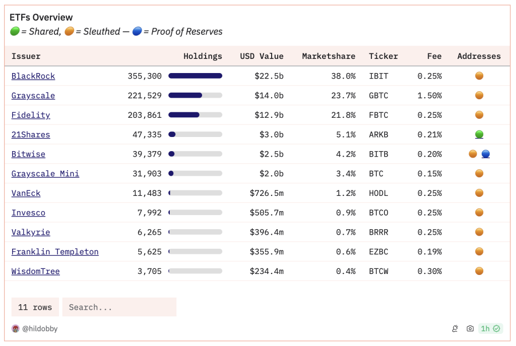 According to Dune Analytics, BlackRock’s iShares Bitcoin Trust (IBIT) had captured over 38% of the total Bitcoin ETF market, with over $22.5 billion in on-chain holdings.