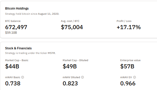 At current prices near $87,800, those holdings are valued at roughly $59 billion, leaving the firm with an unrealized gain of about 17%.