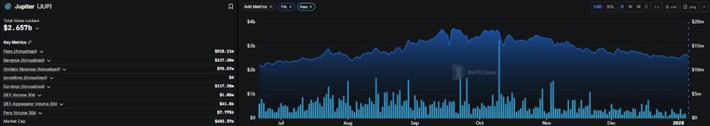 Jupiter is facing a similar reckoning, as the Solana-based DEX aggregator spent more than $70 million on JUP buybacks in 2025, funded by roughly half of its protocol fee revenue.