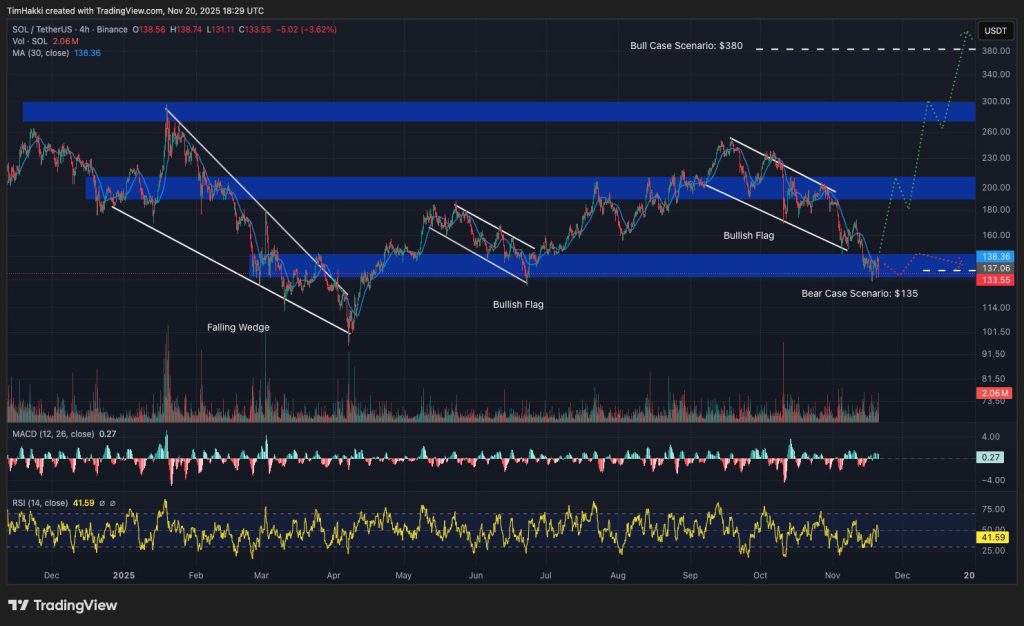 This resilience is reflected in Perplexity’s bear-case scenario, which sees SOL climbing just $3 over the next month to trade at $135 by New Year.