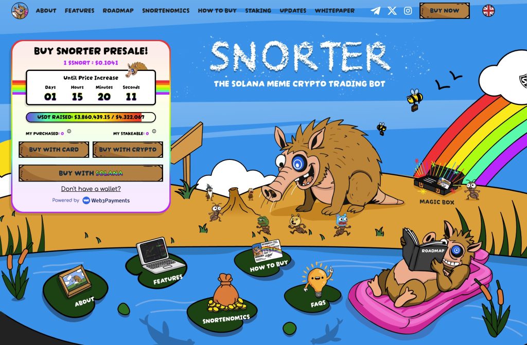 Join the Snorter ($SNORT) presale now on the official website. This could be the last early entry, with the token set to enter the open market mid-bull run once the presale phase is over.