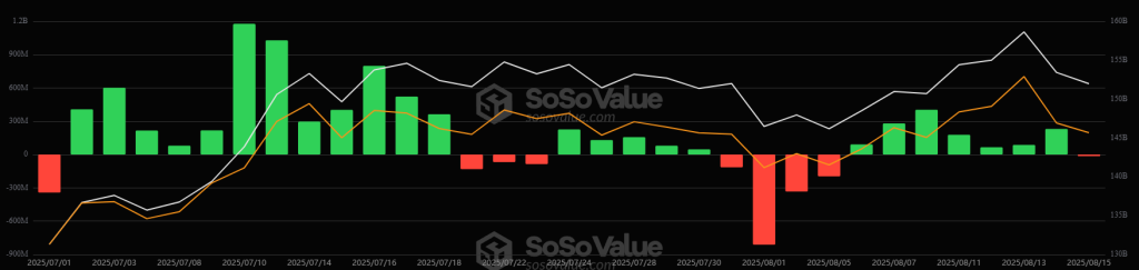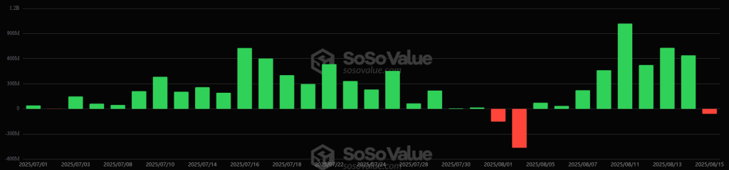 On the same day, the US ETH ETFs also broke their eight-day streak with a loss of $59.34 million. The cumulative total net inflow has now reached $12.73 billion, as of 14 August.