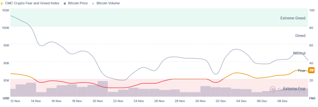 Over the past week, BTC fell by 3.3%. It has been trading in the $88,202–$94,267 range.