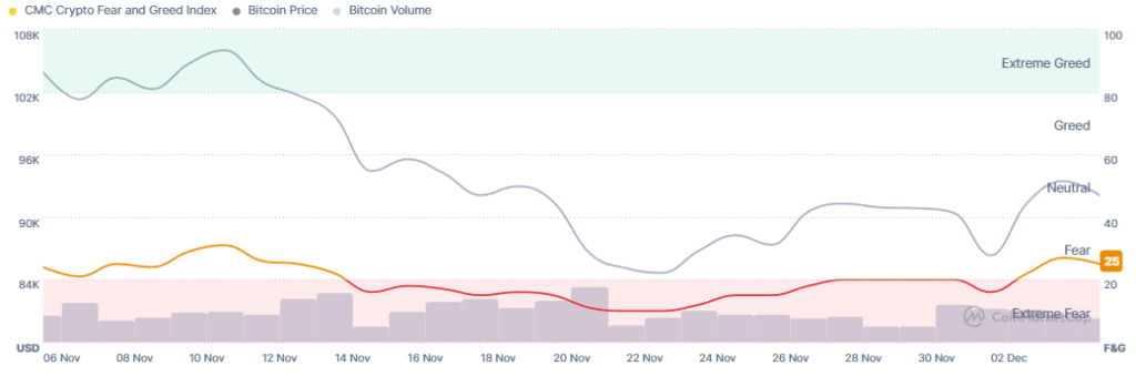 Meanwhile, after a couple of days of increases, the crypto market sentiment reversed course and dropped again within the fear territory. The crypto fear and greed index stands at 25 today, compared to 27 yesterday.