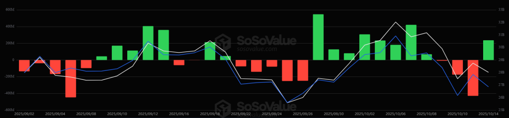 However, the US ETH ETFs recorded $5.32 million in inflows on 15 October. The cumulative total net inflow now stands at $14.72 billion.