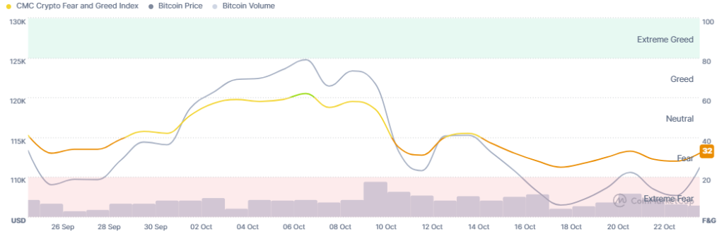 Meanwhile, the crypto market sentiment has risen slightly within the fear zone. The crypto fear and greed index increased from 28 to 32 today.