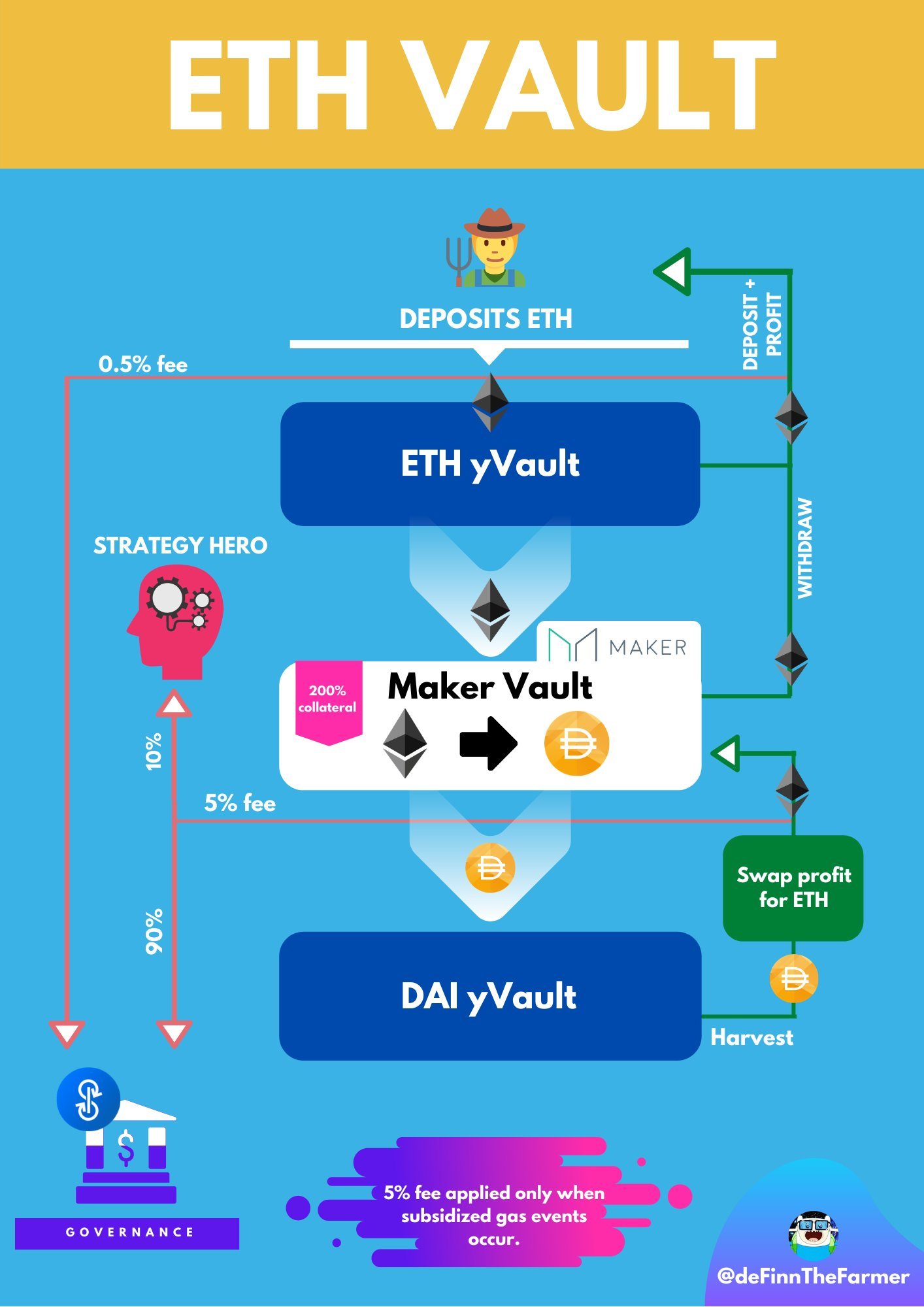 The yETH vault borrows DAI from this vault against this ETH at a 200% collateralization ratio (as a protection against liquidation).