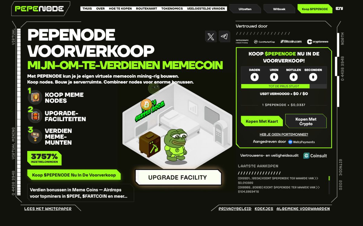 - Community-kracht: Pepenode draait volledig om de kracht van memes en community. Een actieve achterban is vaak bepalend voor hoe ver een memecoin kan doorgroeien.