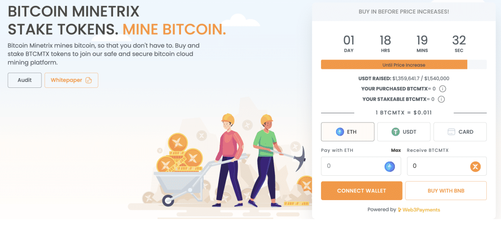 Om BTCMTX te kopen zul je ETH, USDT BNB of een creditcard nodig hebben. Als je van plan bent om via ETH te kopen kan je meteen starten met het staken van BTCMTX tokens.