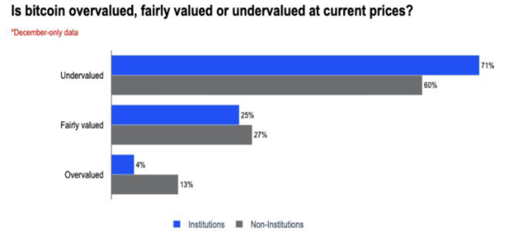 Coinbase publiceerde recent zijn kwartaalrapport over de cryptomarkt. Daarin nam het platform een enquête af onder institutionele en onafhankelijke investeerders. Ongeveer 70% van de grote partijen vindt dat bitcoin ondergewaardeerd is bij een koers tussen $85.000 en $95.000. Ook onder particuliere investeerders overheerst dat gevoel.