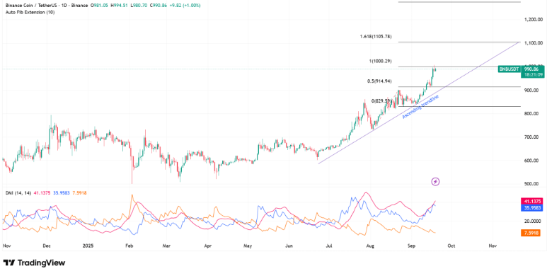 De BNB koers heeft deze week een nieuwe all-time high gehaald van net boven de $1000. On-chain data laat zien dat liquiditeit groeit, de spotmarkt stabiel vraag houdt en institutionele partijen actiever worden. Gaat het de Binance Coin koers daarom lukken om de stijging door te zetten?