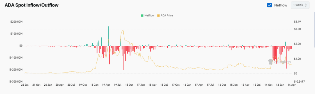 Data van CoinGlass laat zien dat investeerders de afgelopen zeven weken actief ADA hebben gekocht. In totaal is er voor $379 miljoen aan ADA geaccumuleerd. Dat is ongeveer 1,7% van de huidige marktwaarde van $22 miljard.