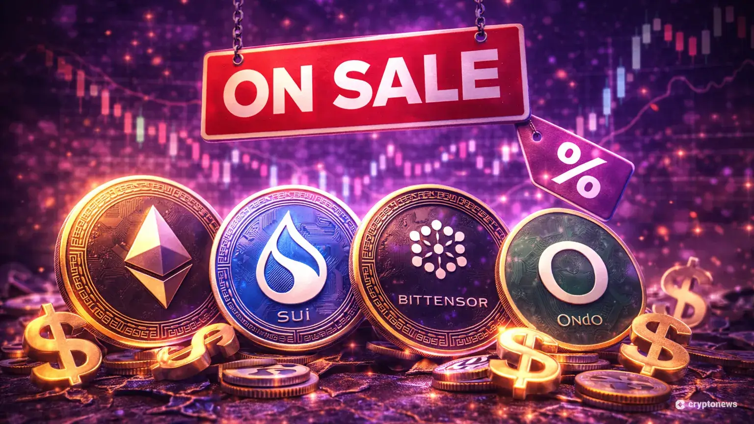 Op het gebied van altcoins, noemt de spreker vier exemplaren, waaronder Ethereum (ETH), Sui (SUI), Bittensor (TAO) en Ondo (ONDO).