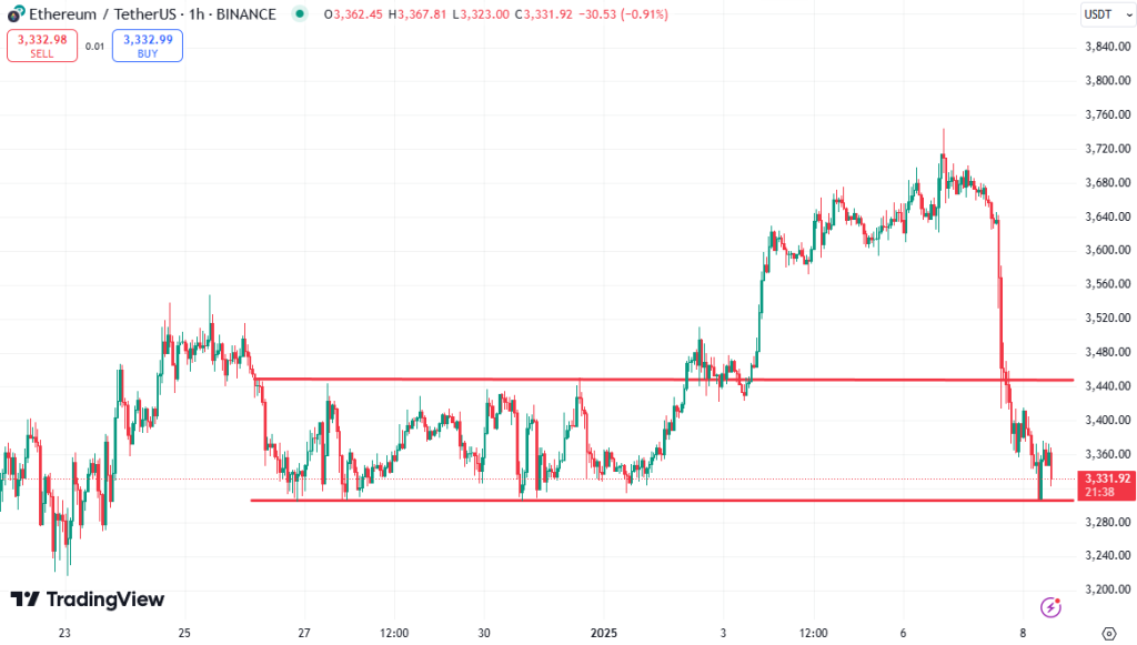 Op $3450 stond een belangrijk ondersteuningsniveau voor de Ethereum koers en nu het hieronder uitgebroken is, zien analisten de mogelijkheid dat de koers verder daalt tot $2400.