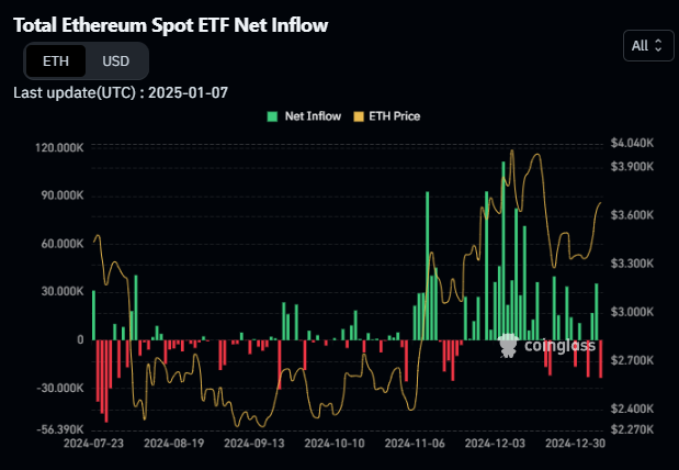 Er staan op het moment geen grote evenementen gepland voor Ethereum. Ook lijkt er van buitenaf geen positieve invloed te komen die de koers kan helpen. Zo lijkt ook de stijging in Ethereum ETF inflows gestopt te zijn