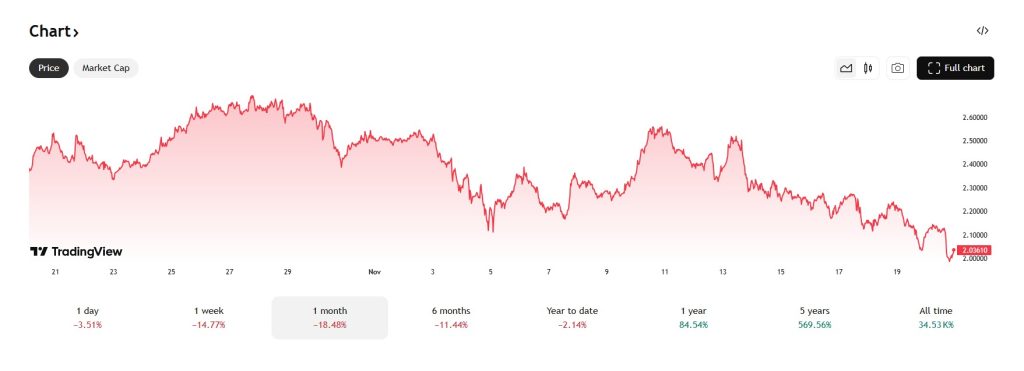 De Ripple koers zit even als die van veel andere tokens in een dip. In de afgelopen maand daalde de waarde van XRP met meer dan 18%. Op het moment van schrijven betaal je voor 1 XRP token $2,04.