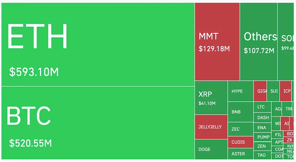 Van het totale bedrag kwam ongeveer $1,38 miljard uit longposities. De grootste enkele liquidatie vond plaats op Hyperliquid, waar een positie ter waarde van $26,06 miljoen werd gesloten. Maar wat betekent dit voor de koersverwachting van crypto?