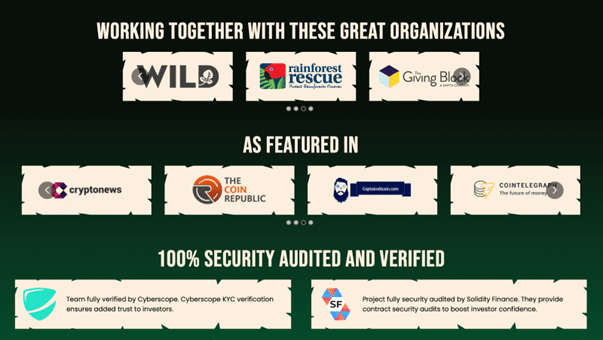 Bij elke relevante mijlpaal die behaald wordt in de presale zal Chimpzee een organisatie steuning die zich inzet voor het behoud van de natuur. Voorbeelden van deze initiatieven zijn:
