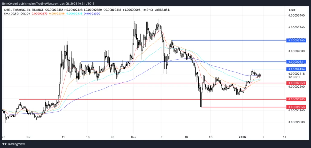 Na de opleving die Shiba Inu het einde van 2024 doormaakte, is een aanzienlijk deel van de gemaakte winsten in rook opgegaan. Shiba Inu wist op 5 december dicht in de buurt te komen van zijn recordhoogte bij de $0,000035, maar is een maand later inmiddels nog maar $0,00002404 waard. Shiba Inu is dan ook met meer dan 24% gedaald over de afgelopen 30 dagen.