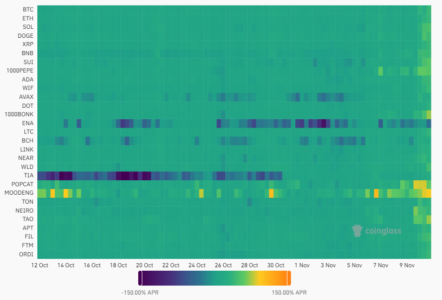 Funding rate per dag, per munt