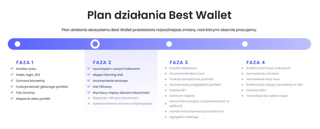 Od strony inwestycyjnej Best Wallet rozwija agregator stakingu, który wyszukuje najwyższe dostępne stopy zwrotu w różnych sieciach i zwiększa je dzięki mechanikom opartym o BEST. Nadchodzący moduł tradingu derywatów w aplikacji przekształci Best Wallet w kompleksowy terminal handlowy.