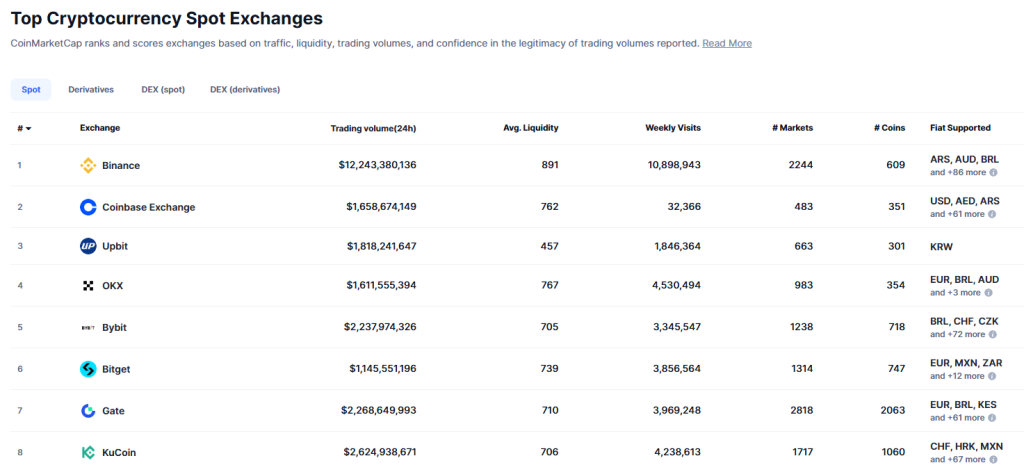 KuCoin zajmuje ósme miejsce wśród największych giełd kryptowalut pod względem wolumenu spot, tuż za Gate i Bitget. Tylko w ciągu ostatnich 24 godzin przetworzyła 3,7 mld USD w handlu spot oraz ponad 5 mld USD w instrumentach pochodnych, co daje jej przewagę płynnościową, z którą może konkurować niewiele giełd w branży.