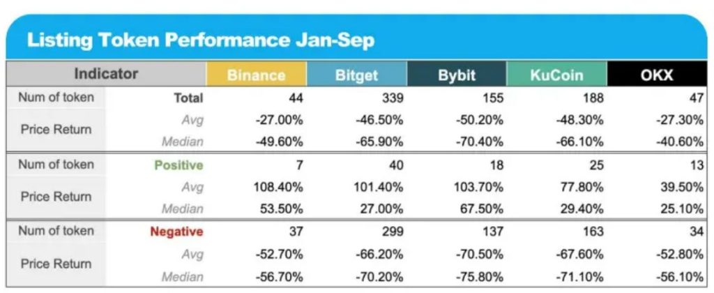 Dane z ubiegłego roku pokazują, że gdy token notowany na KuCoin radzi sobie dobrze, wzrosty rzędu 30% do ponad 100% nie należą do rzadkości. Wśród czołowych giełd krypto KuCoin plasuje się w ścisłej czołówce pod względem pozytywnych wyników nowych listingów, notując 25 tokenów na plusie – więcej niż Binance i większość konkurentów, z wyjątkiem Bitget.