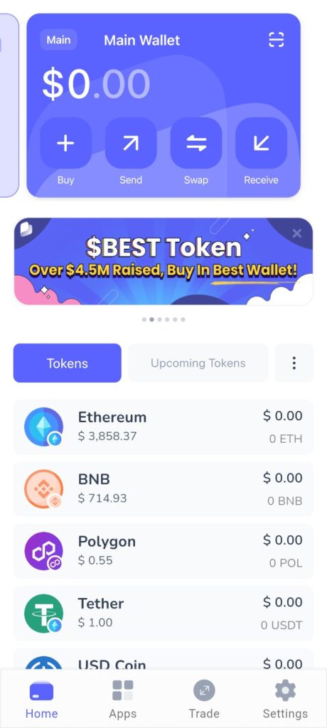 Best Wallet to doskonałe narzędzie zarówno dla początkujących, jak i zaawansowanych użytkowników – oferuje przejrzysty interfejs, szybki onboarding oraz rozbudowane funkcje inwestycyjne bez konieczności korzystania z zewnętrznych platform.