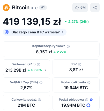 | Wskaźnik / Cecha | Bitcoin (BTC) | Złoto (XAU) |