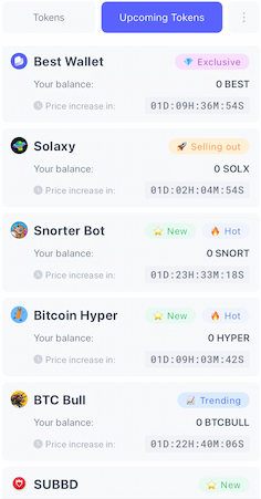 Here are the tokens currently listed on Best Wallet’s presale dashboard, together with their utility, price, and amount raised: