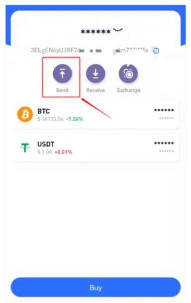 On the Ellipal app, go to assets and select the crypto you want to use. Then, you’ll see three options: ‘Send’, ‘Receive,’ and ‘Exchange.’ Tapping on the send option will take you to a page where you have to fill in the amount of crypto and the address to which you want to send it. You can then choose the fees and submit the transaction.
