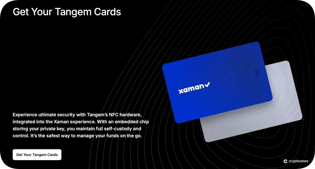 Developed in partnership with Tangem, Xaman Cards are NFC-enabled hardware wallets that store your keys inside a CC EAL6+ certified secure element. The card generates your key internally, signs transactions inside the chip, and never exposes the key to your phone or the internet.
