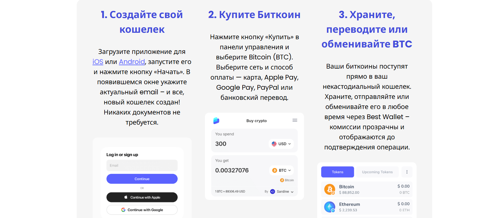 Важно помнить и о том, где хранить свои цифровые деньги. У каждого способа есть свои плюсы и риски. Тут важен баланс между безопасностью, удобством и контролем. Новичкам советуем присмотреться к Best Wallet и другим мобильным кошелькам.