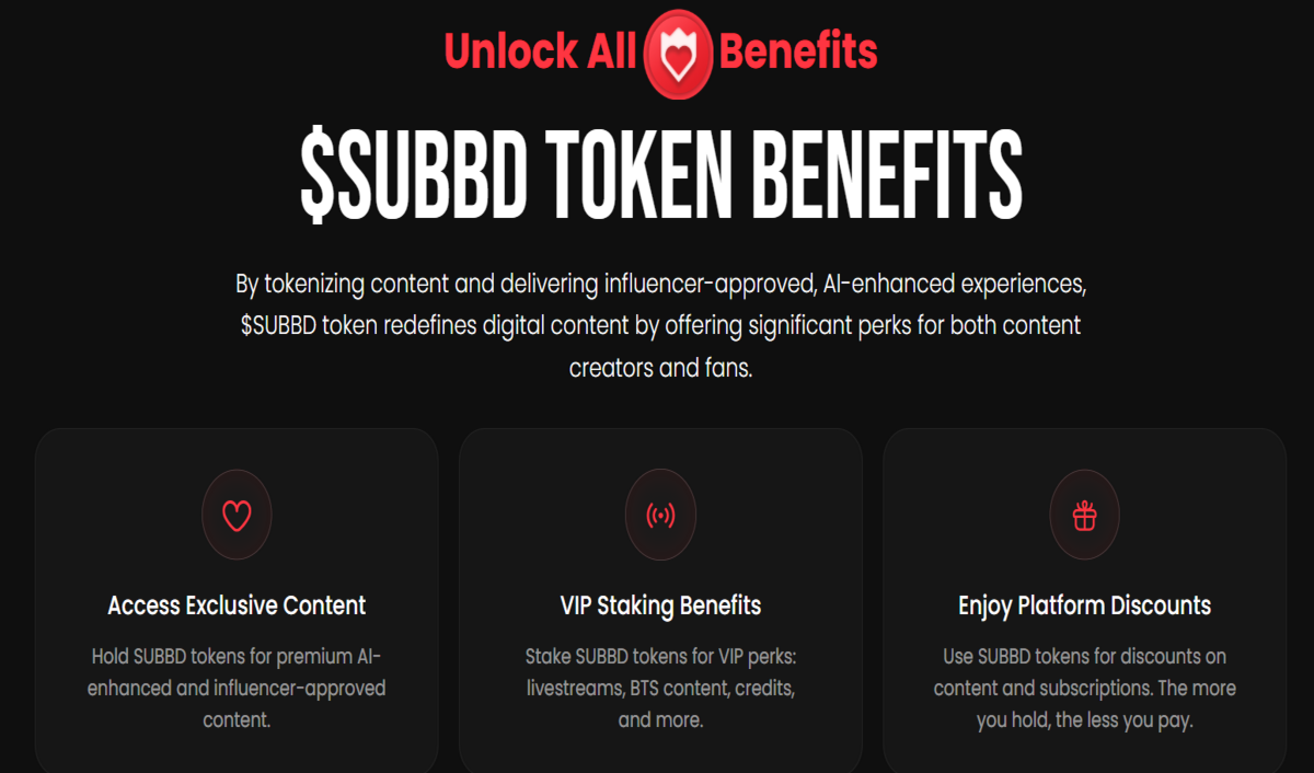 SUBBD – платформа для создателей контента с интеграцией ИИ. Проект связывает инфлюенсеров с фанатами через блокчейн, оптимизируя платежи и улучшая пользовательский опыт. Нативный токен платформы $SUBBD предоставляет креаторам и подписчикам доступ к ИИ-инструментам и другим полезным функциям.