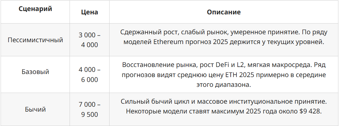 Таким образом, прогноз цены Эфира 2025 находится примерно в коридоре $3 000–9 500.