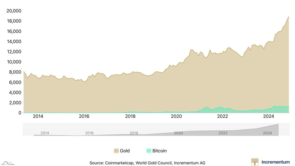 Это происходит на фоне растущей уверенности в криптовалютном сообществе в том, что биткойн может занять большую долю 15 триллионного рынка золота. Сторонники утверждают, что цифровая природа биткойна, его дефицит и децентрализованные характеристики делают его современным альтернативным средством сохранения стоимости по сравнению с золотом.