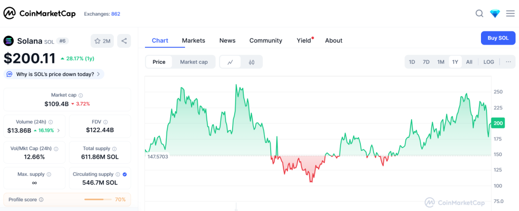 Solana (SOL): цена стабильна, а объем торгов растет