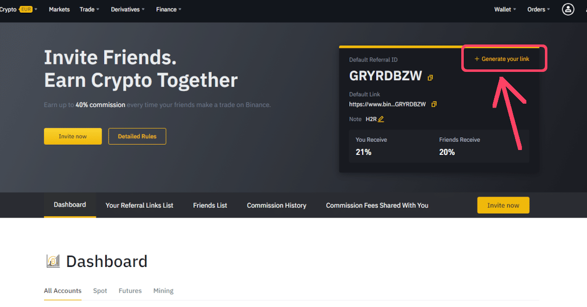 Процесс начинается с создания реферального кода или ссылки Binance. Ими уже существующие пользователи могут делиться с друзьями напрямую, либо в сообществах. Пользователи, зарегистрировавшиеся по такому коду или ссылке, должны выполнить определенные условия, чтобы и они, и пригласивший их пользователь получили криптобонусы.