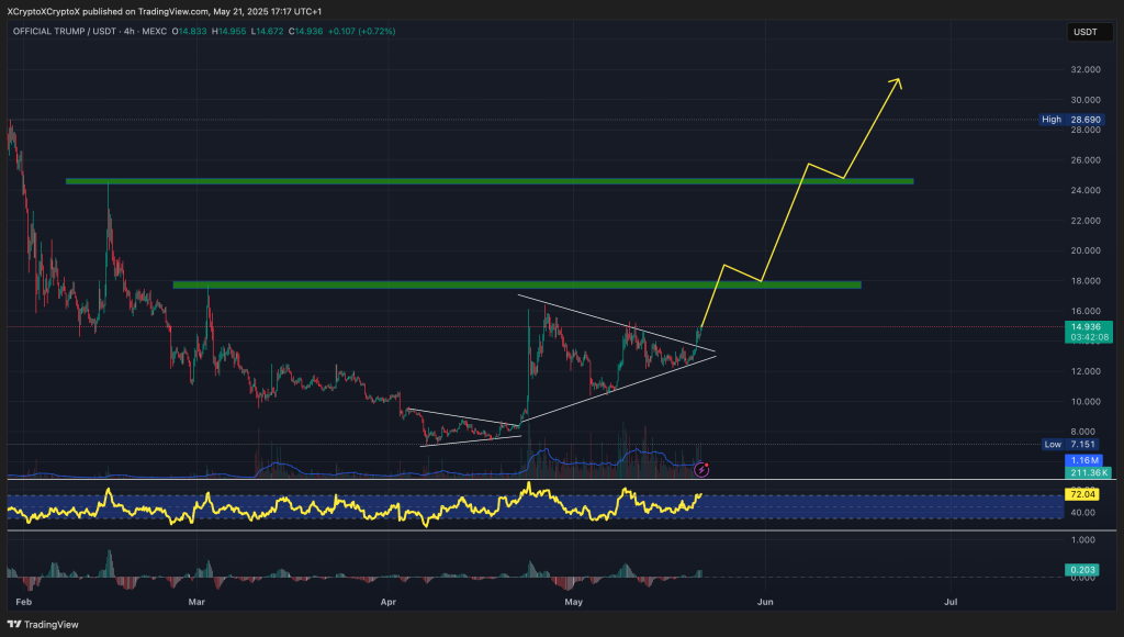 Прогноз цены Trump Coin: обед 22 мая может спровоцировать самый безумный мем-памп 2025 года