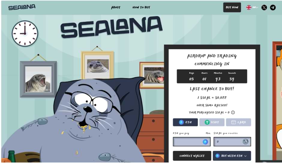 Sealana (SEAL) communityn är otroligt exalterade då förköpet går in i sista etappen innan den efterlängtade airdroppen. Förköpet kommer officiellt att avslutas den 1 juli klockan 15:00 CET. Tiden är knapp för den som vill köpa SEAL-tokens och kunna delta i airdroppen. “Airdropförsäljningen” kommer sedan att pågå till airdroppen verkligen kör igång. Som investerare kan du köpa tokens med SOL, ETH, USDT, USDC eller med fiatvalutor och ett vanligt bankkort. Tokens som köps under detta 24-timmars fönster kommer att airdroppas efter den första airdroppen. ‘Tokentrading med SEAL på decentraliserade kryptobörser kommer officiellt att börja den 2 juli klockan 15:00 CET. Sealana har lyckats sticka ut i en konkurrenskraftig bransch med en lekfull meme coin som tilltalar en bred publik. Den är inspirerad av en patriotisk och överviktig amerikansk Rednecksäl som påminner om World of Warcraft-karaktären från South Park. Nu när förköpet går in på upploppet kan du under begränsad tid köpa SEAL-tokens till ett rabatterat pris till $0.022.