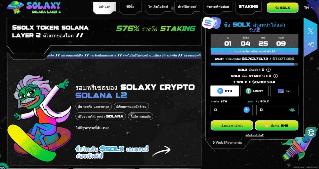 ในช่วงที่ตลาดคึกคักแบบนี้ Solaxy (SOLX) กำลังเป็นที่สนใจในฐานะดาวรุ่งดวงใหม่ โปรเจกต์สร้างบนเครือข่าย Solana และมีความมุ่งมั่นที่จะทำงานในฐานะโซลูชันเลเยอร์ 2