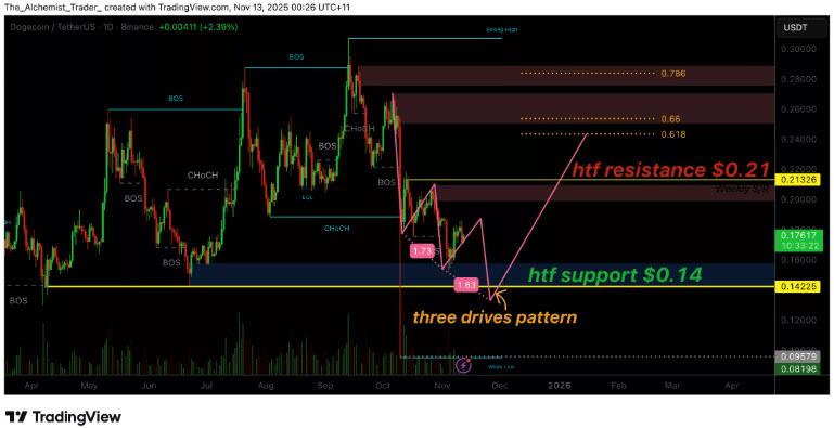 ขอบคุณข้อมูลจาก https://crypto.news/dogecoin-price-holds-0-15-three-drives-pattern-forms/