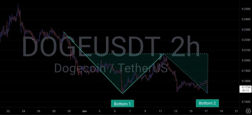 Dogecoin ส่งสัญญาณกลับตัว: รูปแบบ “Double Bottom” บนกราฟ 2 ชั่วโมง